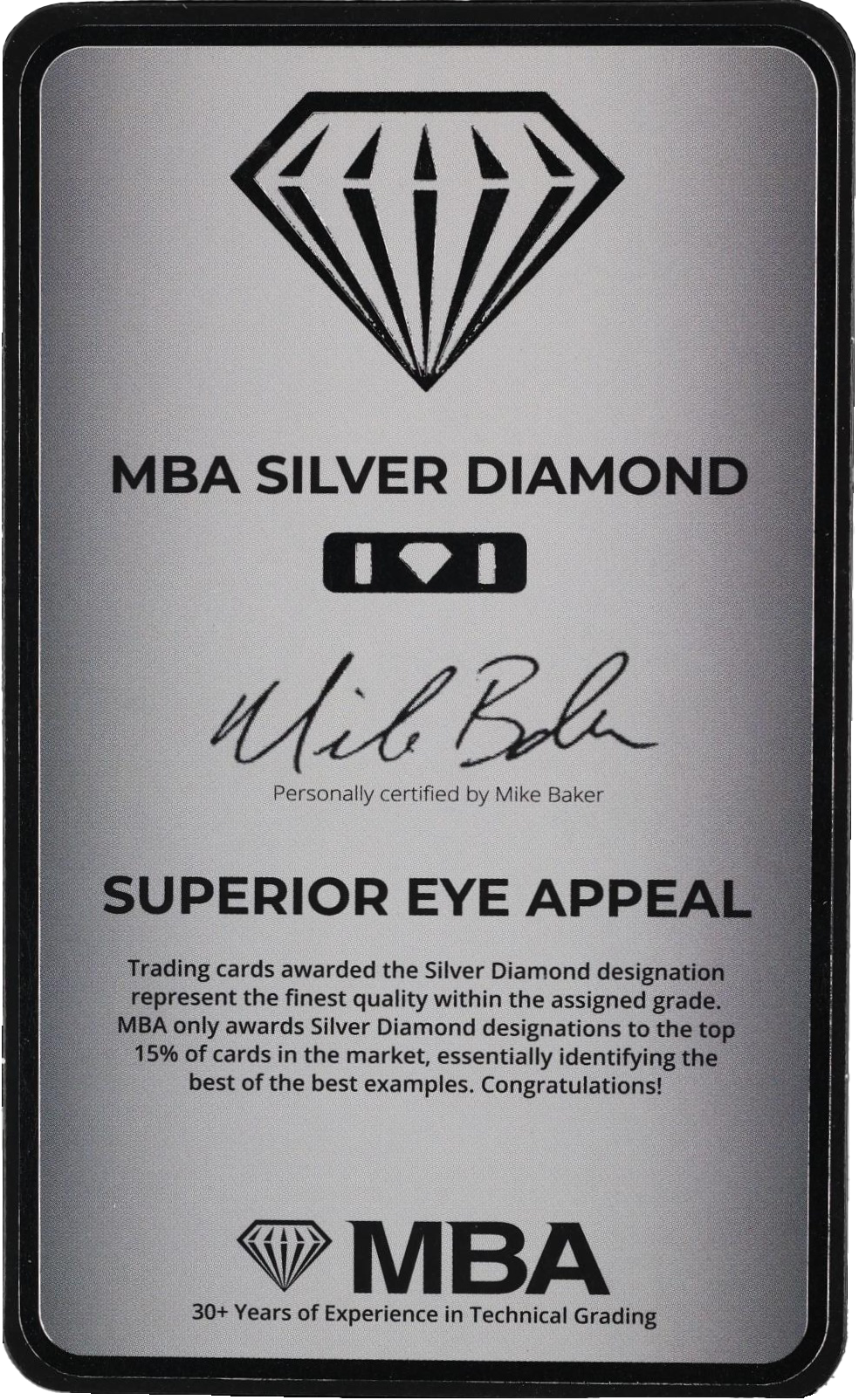- The MBA Silver Diamond Certification is awarded to cards which hold superior eye appeal within the otherwise accurate technical grade. Trading cards with super eye appeal generally receive higher market valuations.